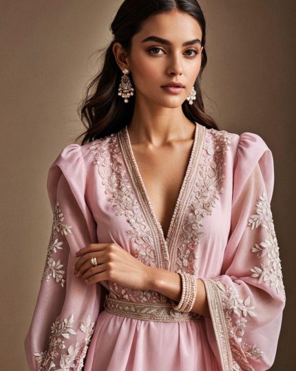 فستان مطرّز وردي بودرة | فستان فخم للمناسبات